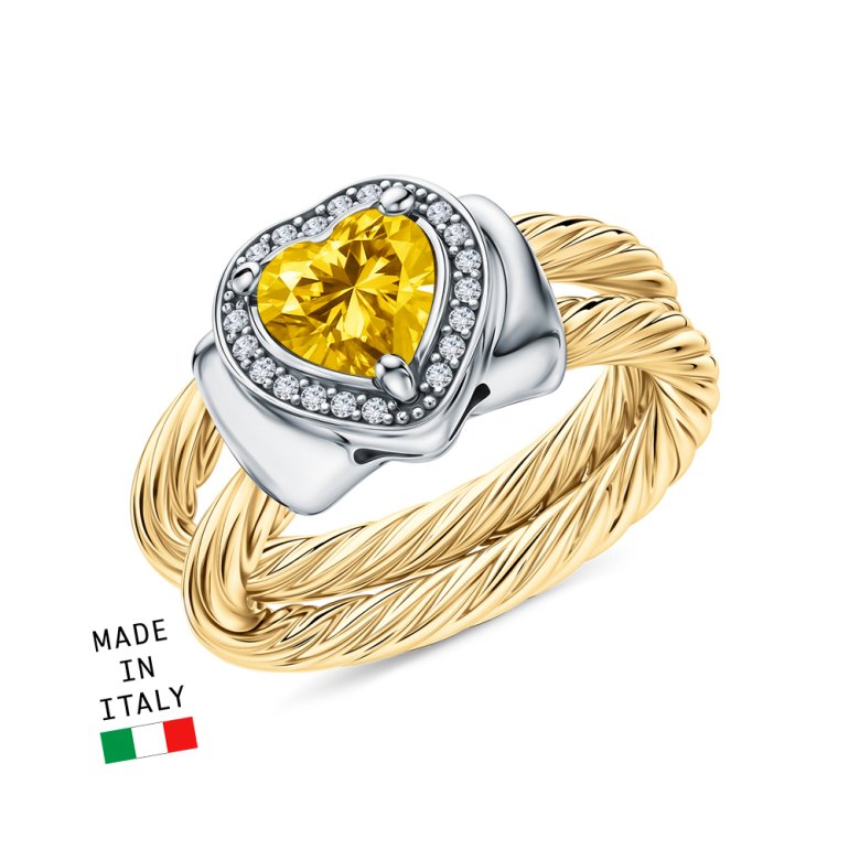 Кольцо, вставка: фианитом бесцветным;  алпанит желтый; Серебро 925 пробы.