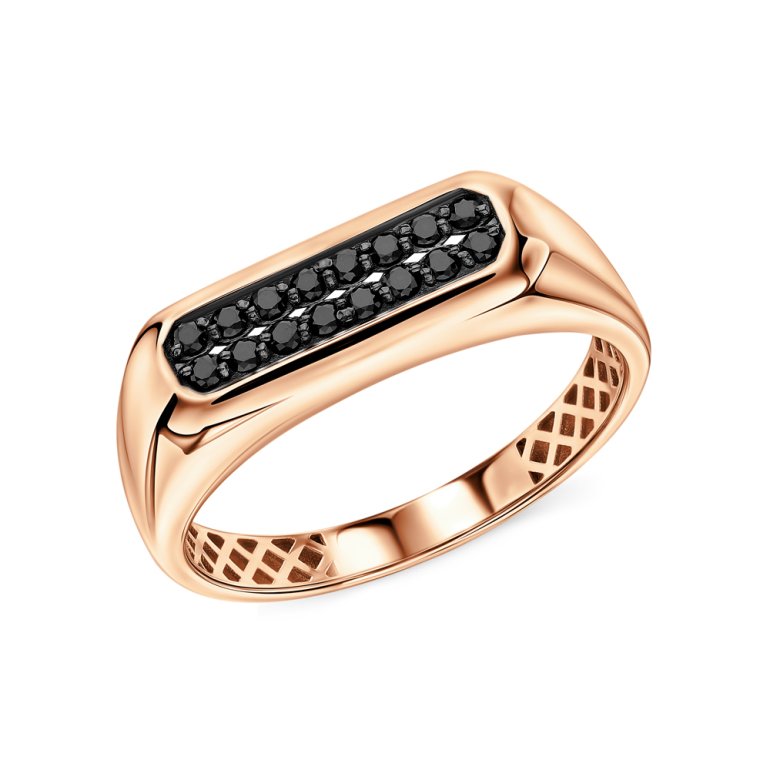 Кольцо, вставка: черным фианитом; Розовое золото 585 пробы.