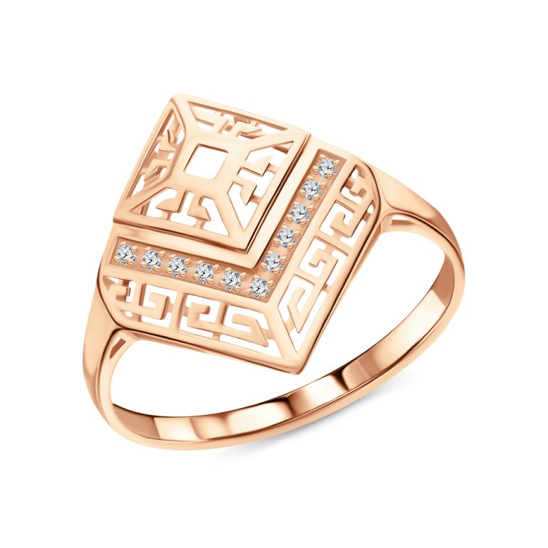 Кольцо, вставка: фианитом бесцветным; Розовое золото 585 пробы.
