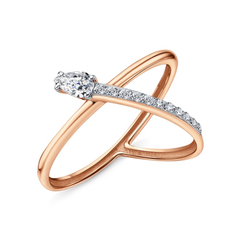 Кольцо, вставка: фианитом бесцветным; Розовое золото 585 пробы.