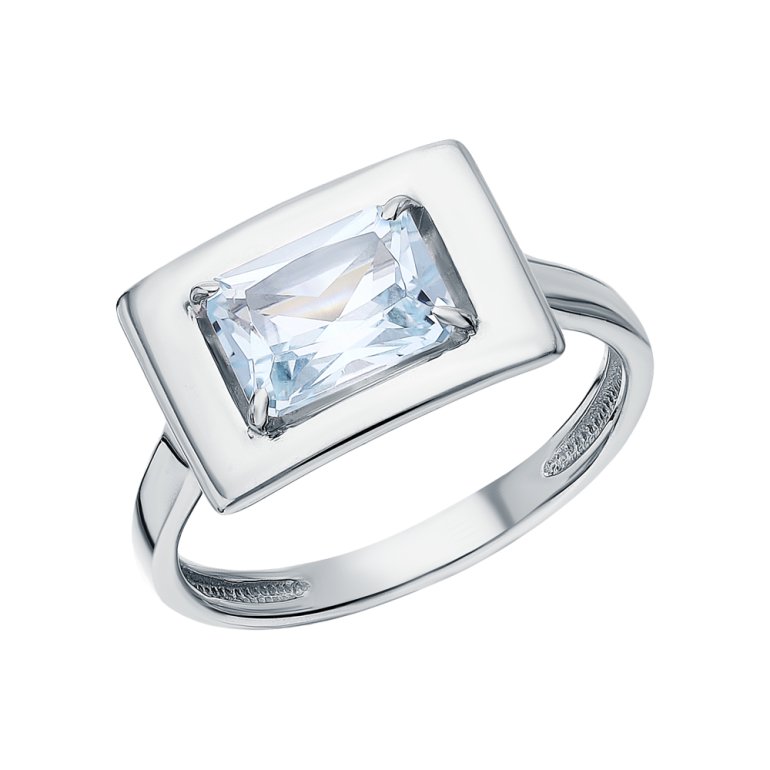 Кольцо с 1 топазом скай природным, 1.819 карат, тип огранки Б; Серебро 925 пробы.