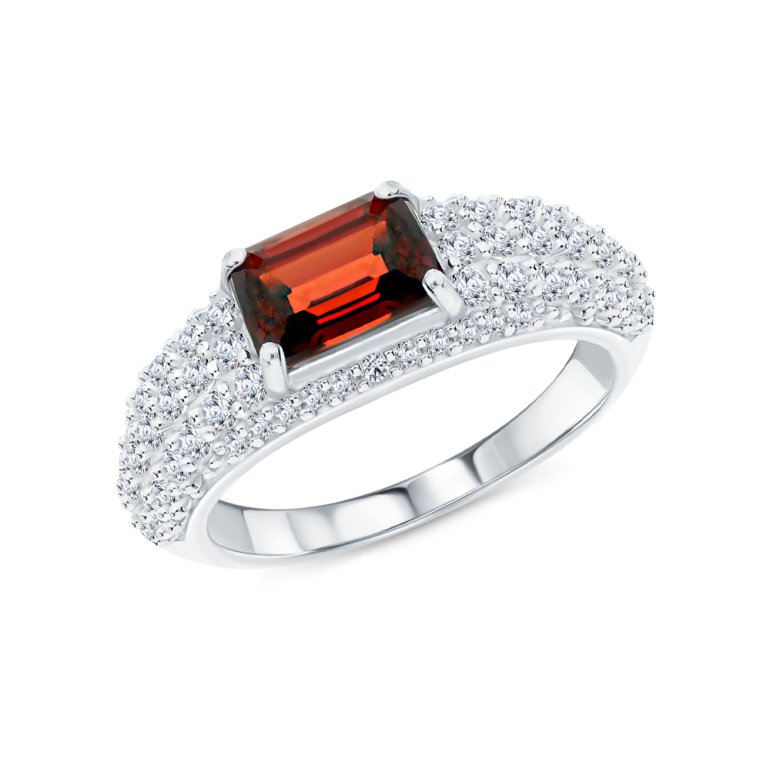 Серебряное кольцо с фианитами и гранатами природными S43040-K9W-01 Кольца SUNLIGHT | V4.Ru: Маркетплейс