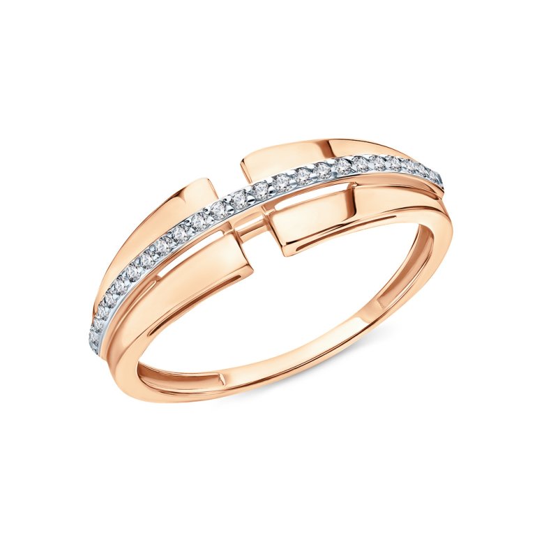 Кольцо, вставка: фианитом бесцветным; Розовое золото 585 пробы.