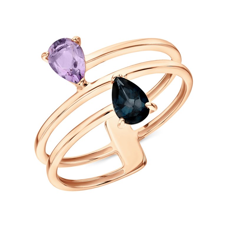 Кольцо с 1 топазом лондон, 0.442 карат, тип огранки Б; 1 аметистом, 0.352 карат, тип огранки Б; Розовое золото 585 пробы.