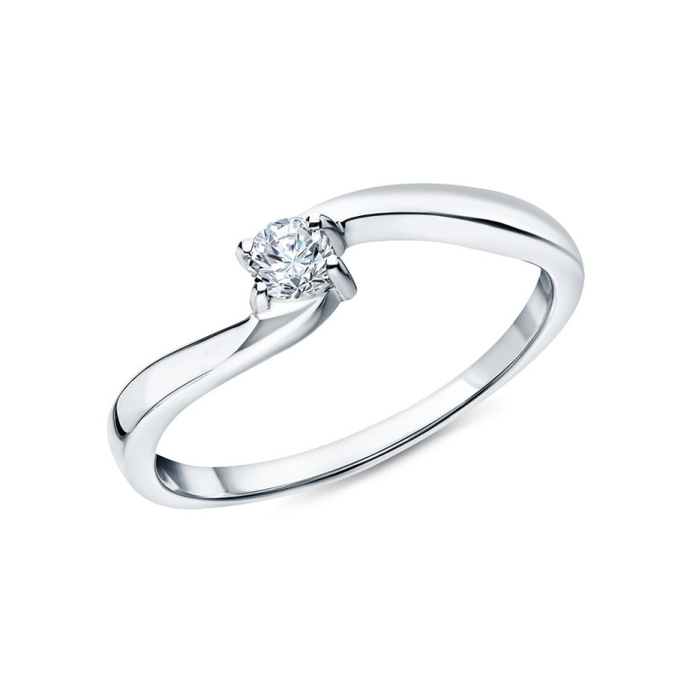 Кольцо с 1 бриллиантом выращенным, 0.11 карат, огранка круг 57 граней, цвет 3, чистота 5, тип огранки А; Серебро 925 пробы.