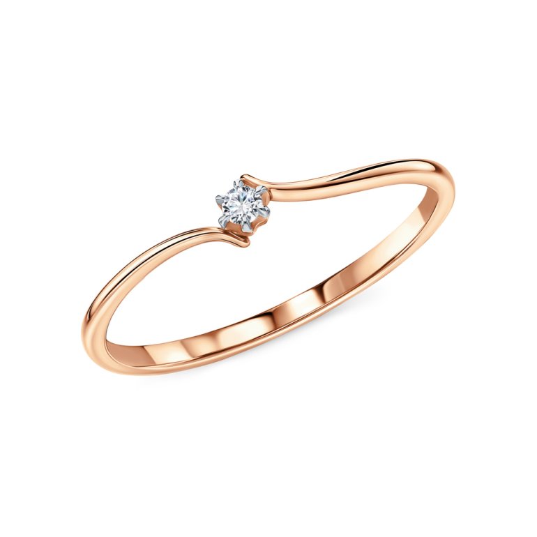 Кольцо с 1 бриллиантом природным, 0.028 карат, огранка круг 57 граней, цвет 3, чистота 6, тип огранки А; Розовое золото 585 пробы.