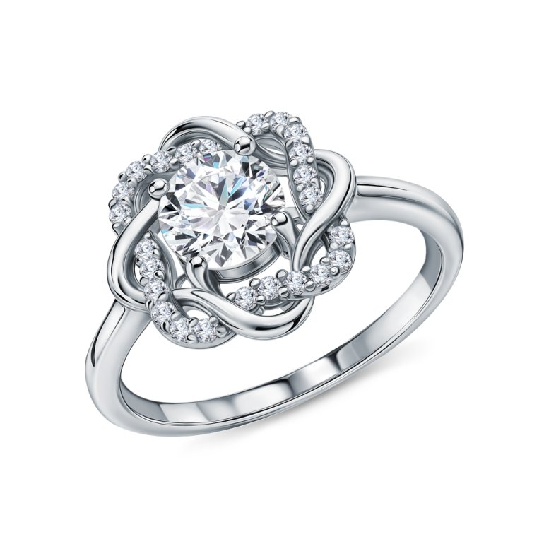 Кольцо, вставка: фианитом бесцветным; Серебро 925 пробы.