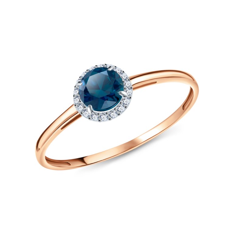 Кольцо с 1 топазом лондон, 0.6 карат, тип огранки В; фианитом бесцветным; Розовое золото 585 пробы.