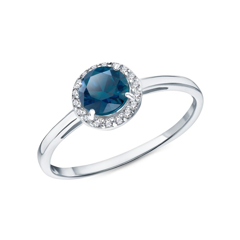 Кольцо с 1 топазом лондон, 0.638 карат, тип огранки В; фианит бесцветный; Белое золото 585 пробы.