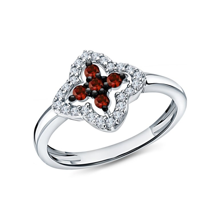 Серебряное кольцо с фианитами и гранатами природными S43035-K9W-01 Кольца SUNLIGHT | V4.Ru: Маркетплейс