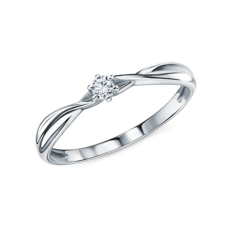 Кольцо с 1 бриллиантом природным, 0.053 карат, огранка круг 57 граней, цвет 3, чистота 6, тип огранки А; Белое золото 585 пробы.