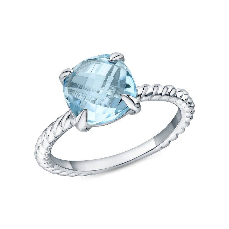 Кольцо с 1 топазом скай природным, 2.55 карат; Серебро 925 пробы.