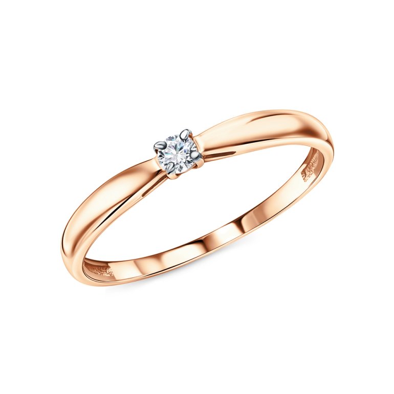 Кольцо с 1 бриллиантом природным, 0.061 карат, огранка круг 57 граней, цвет 3, чистота 6, тип огранки А; Розовое золото 585 пробы.