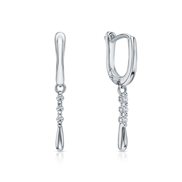 Серьги с 6 бриллиантами выращенными, 0.138 карат, огранка круг 57 граней, цвет 2, чистота 5, тип огранки А; Серебро 925 пробы.