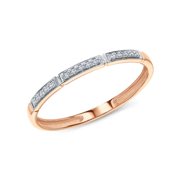 Кольцо с 15 бриллиантами, 0.042 карат, огранка круг 17 граней, цвет 2, чистота 2, тип огранки А; Розовое золото 585 пробы.