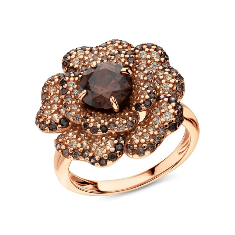 Кольцо, вставка: фианит шампань;  фианит коричневый; Серебро 925 пробы.