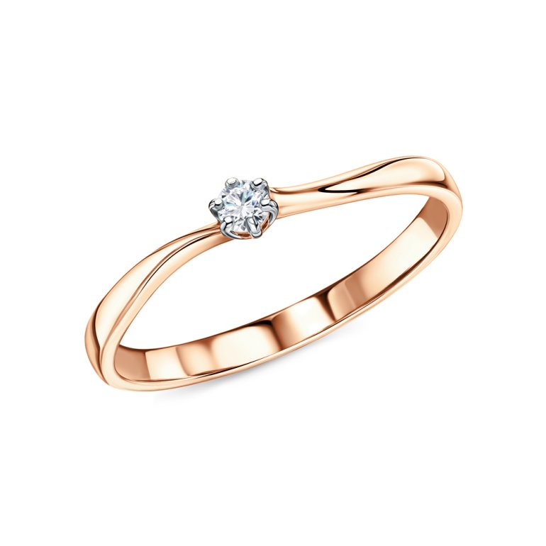 Кольцо с 1 бриллиантом природным, 0.053 карат, огранка круг 57 граней, цвет 3, чистота 6, тип огранки А; Розовое золото 585 пробы.