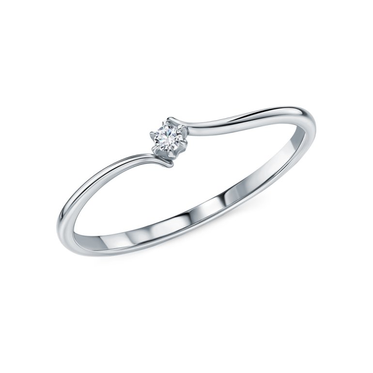 Кольцо с 1 бриллиантом природным, 0.028 карат, огранка круг 57 граней, цвет 3, чистота 6, тип огранки А; Белое золото 585 пробы.