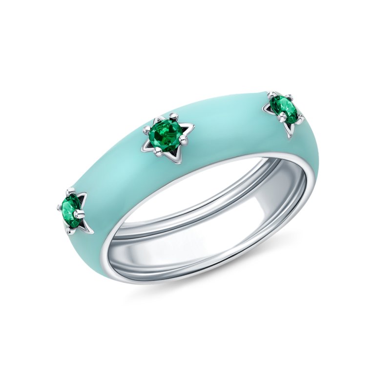Кольцо, вставка: фианит зеленый;  эмаль голубая; Серебро 925 пробы.