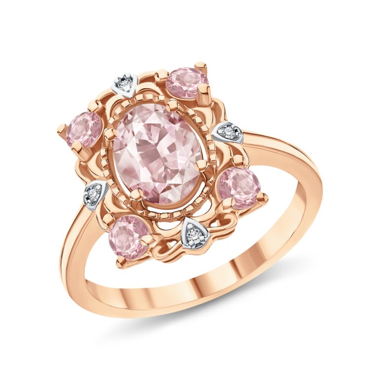 Серебряное кольцо с фианитами и морганитами природными S43139-K9R-01 Кольца SUNLIGHT | V4.Ru: Маркетплейс