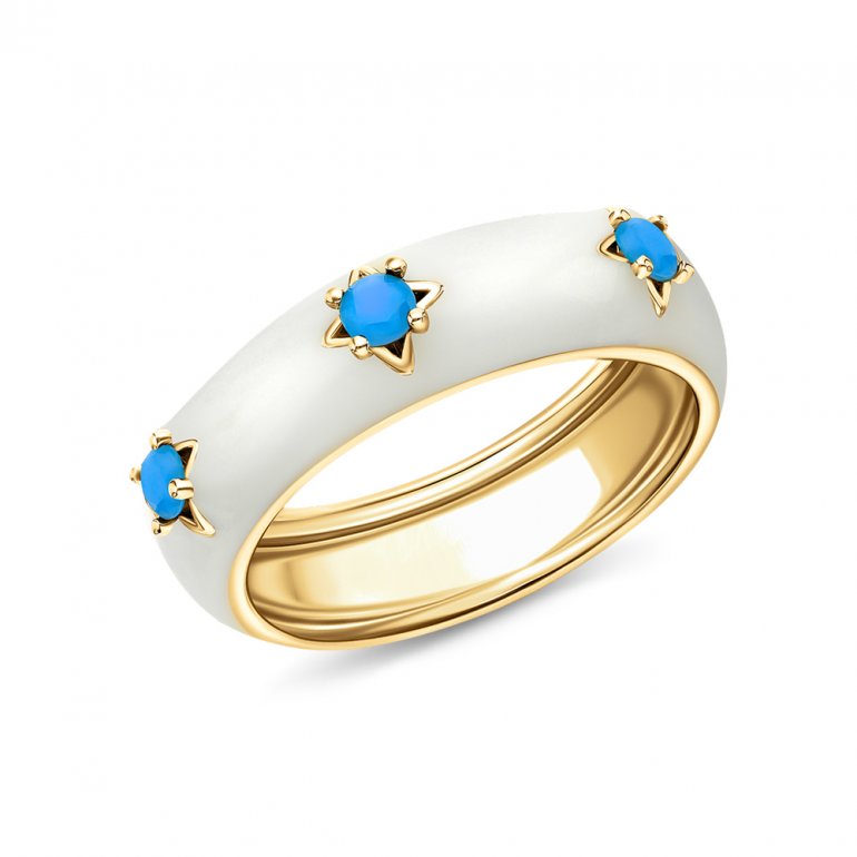 Серебряное кольцо с эмалью и бирюзой синтетической S30951-K9Y-01 Кольца SUNLIGHT | V4.Ru: Маркетплейс