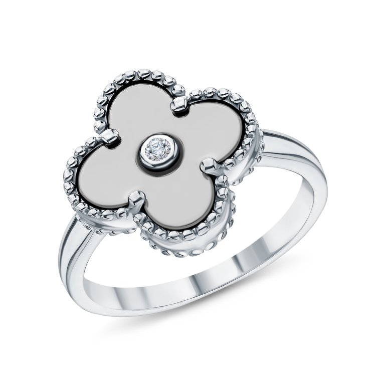 Кольцо, вставка: керамика белая;  фианитом бесцветным; Серебро 925 пробы.