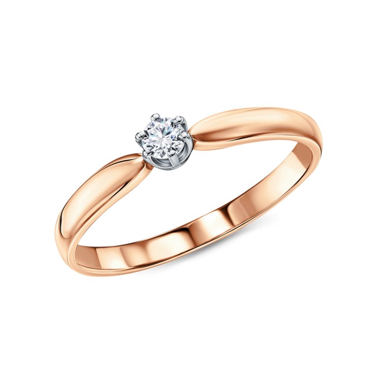 Кольцо с 1 бриллиантом природным, 0.107 карат, огранка круг 57 граней, цвет 3, чистота 6, тип огранки А; Розовое золото 585 пробы.