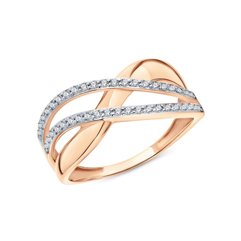 Кольцо, вставка: фианитом бесцветным; Розовое золото 585 пробы.