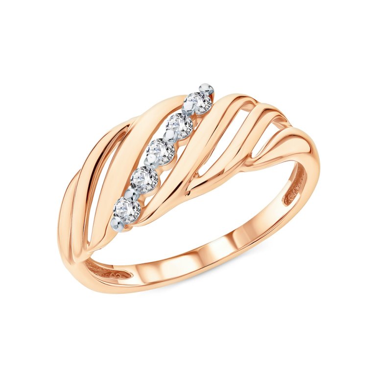 Кольцо, вставка: фианит; Розовое золото 585 пробы.