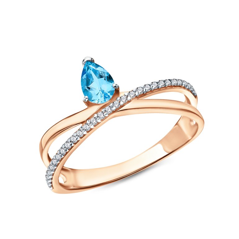 Кольцо с 1 топазом свисс, 0.438 карат, тип огранки Б; фианитом бесцветным; Розовое и белое золото 585 пробы.