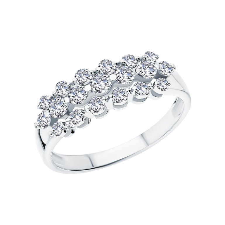 Кольцо с 1 бриллиантом, 0.044 карат, огранка круг 57 граней, цвет 5, чистота 6, тип огранки А; 10 бриллиантами, 0.323 карат, огранка круг 57 граней, цвет 5, чистота 6, тип огранки А; 8 бриллиантами, 0.129 карат, огранка круг 57 граней, цвет 5, чистота 6, тип огранки А; Белое золото 585 пробы.