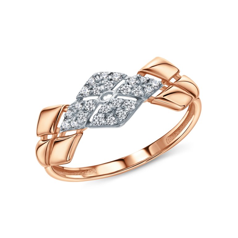 Кольцо, вставка: фианитом бесцветным; Розовое золото 375 пробы.