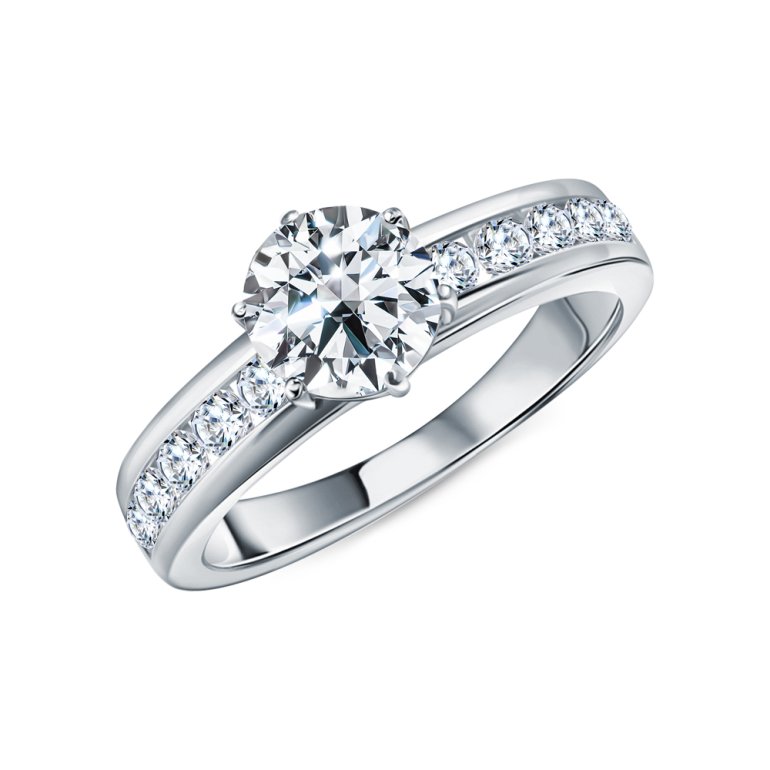 Кольцо, вставка: фианит; Белое золото 585 пробы.