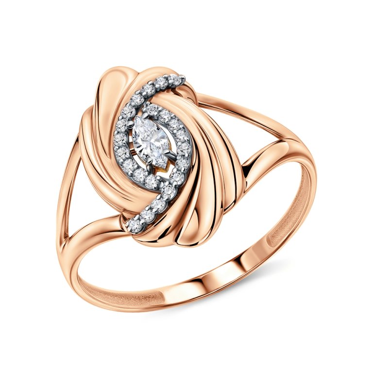 Кольцо, вставка: фианитом бесцветным;  фианитом бесцветным; Розовое золото 585 пробы.
