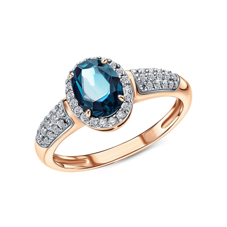 Кольцо с 1 топазом лондон, 0.927 карат, тип огранки Б; фианит; Розовое золото 585 пробы.