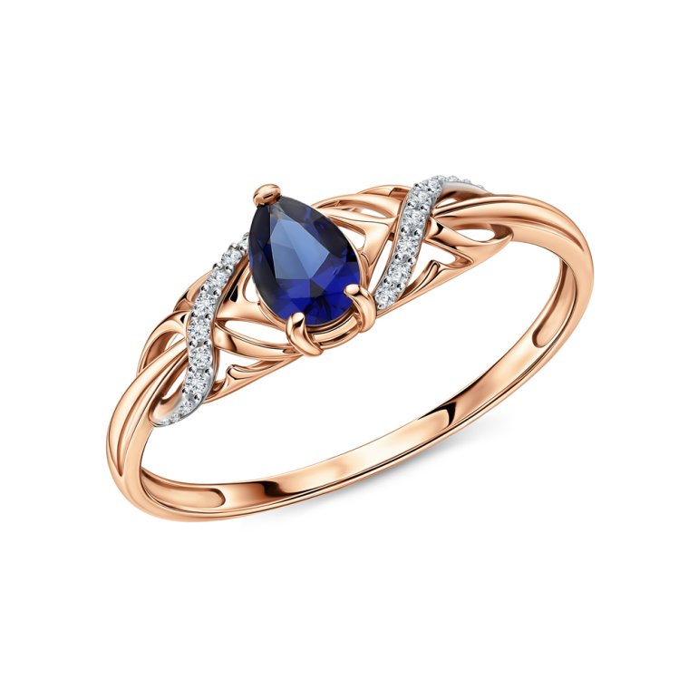 Кольцо с 1 ситалл сапфир, 0.34 карат;  фианитом бесцветным; Розовое золото 585 пробы.