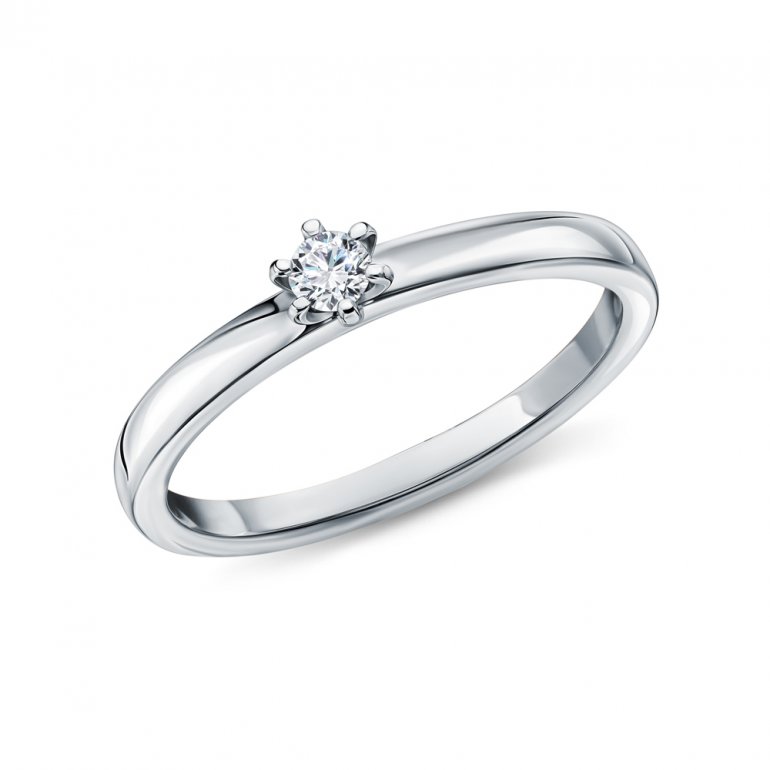 Кольцо с 1 бриллиантом, 0.079 карат, огранка круг 57 граней, цвет 3, чистота 6, тип огранки А; Платина 950 пробы.