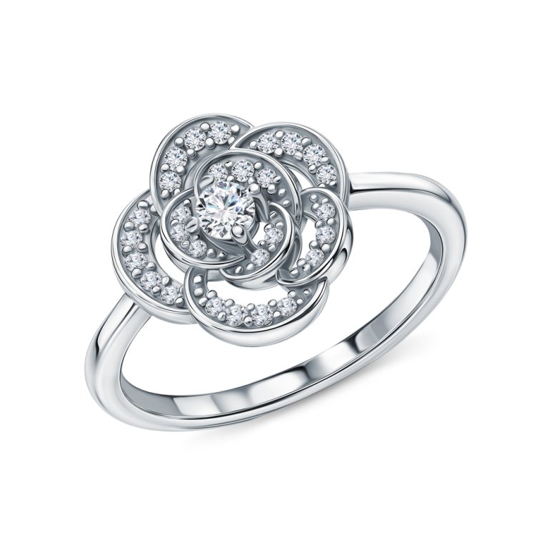 Кольцо, вставка: фианитом бесцветным; Серебро 925 пробы.