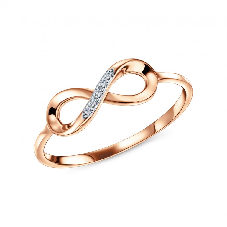 Кольцо с 5 бриллиантами, 0.009 карат, огранка круг 17 граней, цвет 2, чистота 2, тип огранки А; Розовое золото 585 пробы.