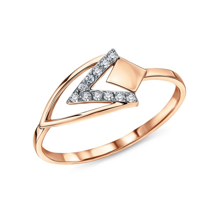Кольцо, вставка: фианит; Розовое золото 585 пробы.