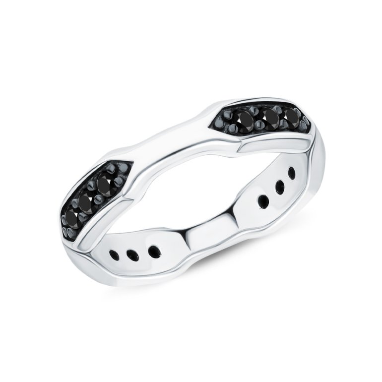 Кольцо, вставка: черным фианитом; Серебро 925 пробы.