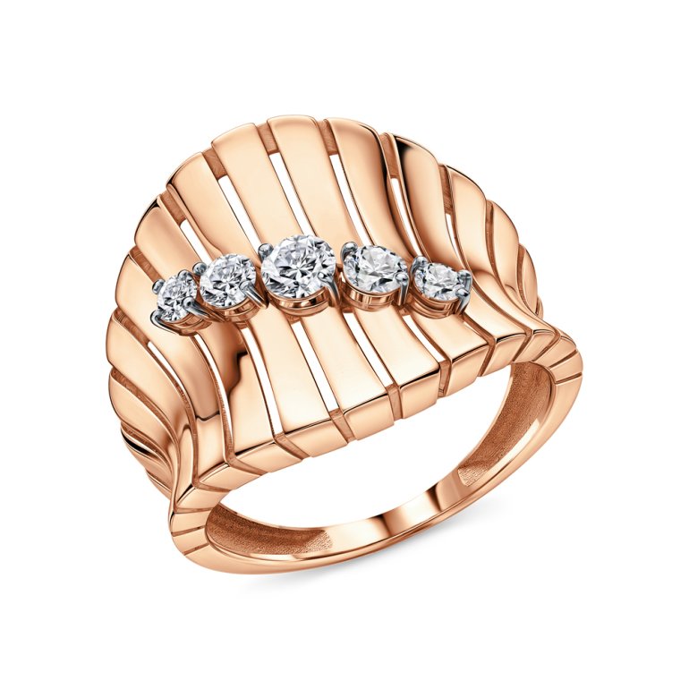 Кольцо, вставка: фианитом бесцветным; Розовое золото 585 пробы.