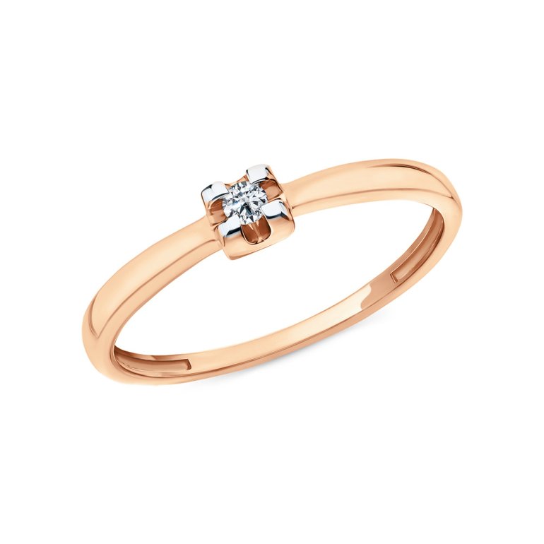 Кольцо с 1 бриллиантом, 0.044 карат, огранка круг 57 граней, цвет 3, чистота 6, тип огранки А; Розовое золото 585 пробы.