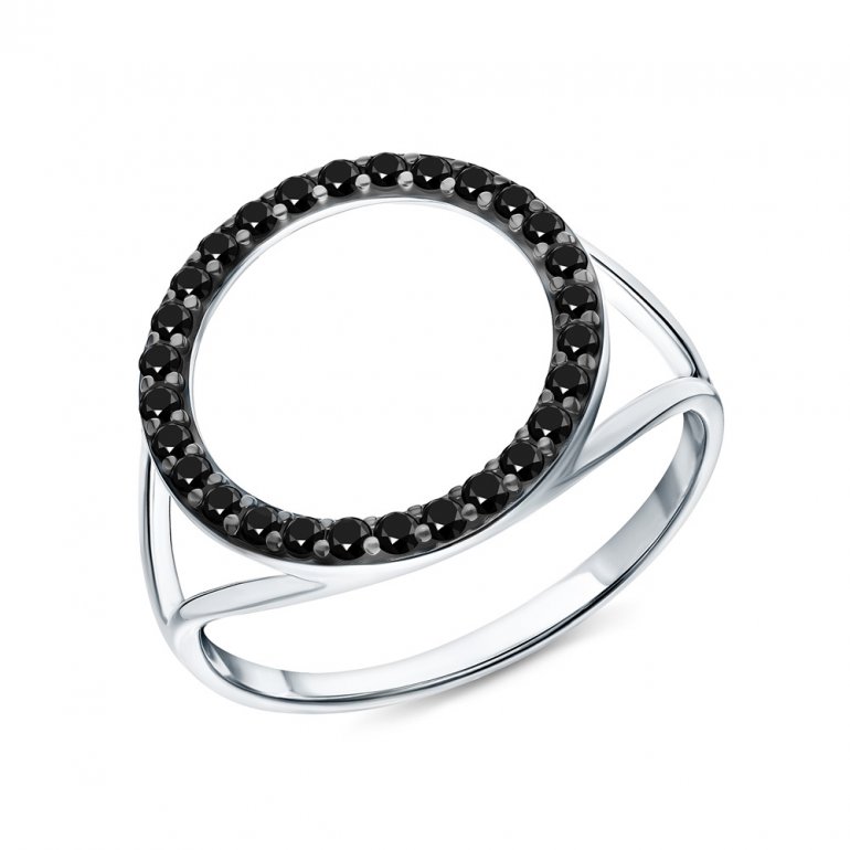 Кольцо, вставка: черным фианитом; Серебро 925 пробы.
