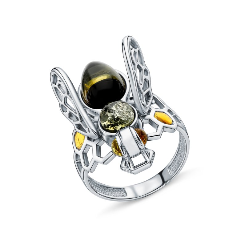 Серебряное кольцо с янтарями природными 920E41149aa Кольца SUNLIGHT | V4.Ru: Маркетплейс