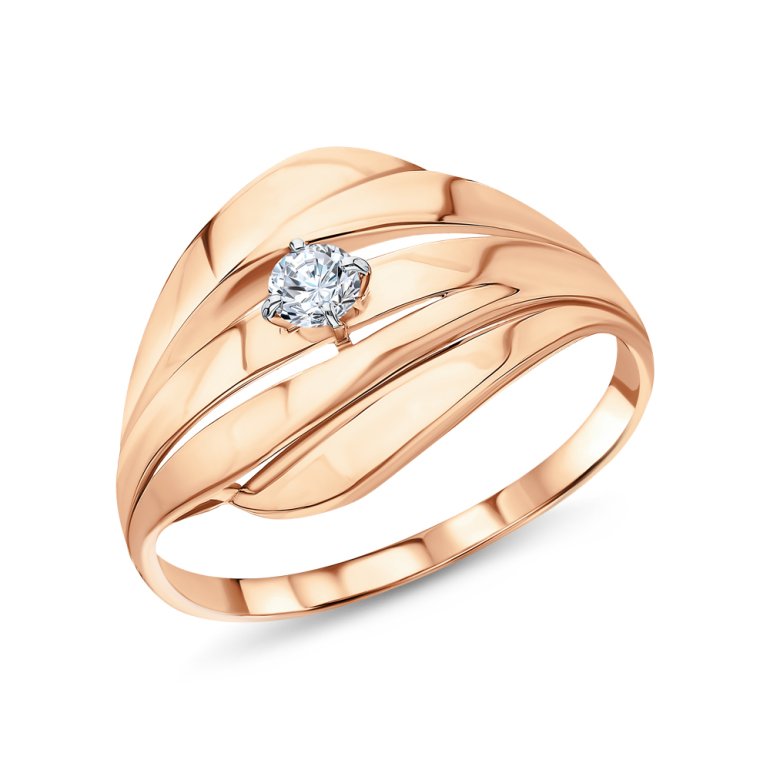 Кольцо, вставка: фианитом бесцветным; Розовое золото 585 пробы.