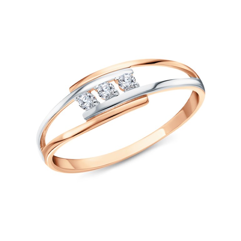 Кольцо, вставка: фианитом бесцветным; Розовое золото 585 пробы.
