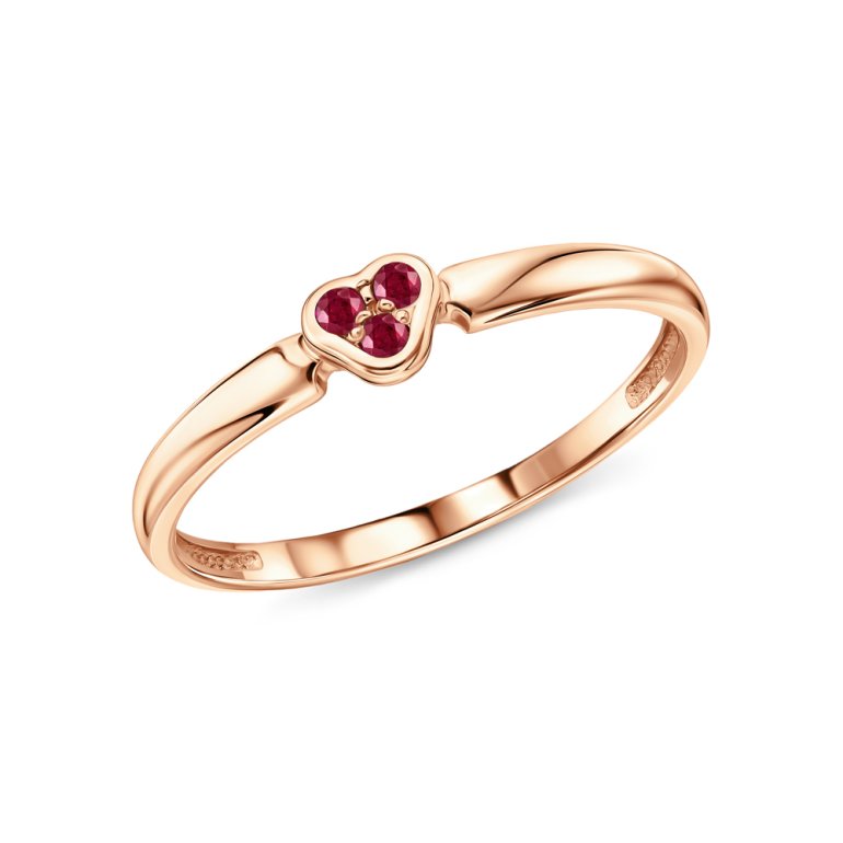 Кольцо с 3 рубинами природными, 0.05 карат, цвет 2, чистота 2, тип огранки В; Розовое золото 585 пробы.