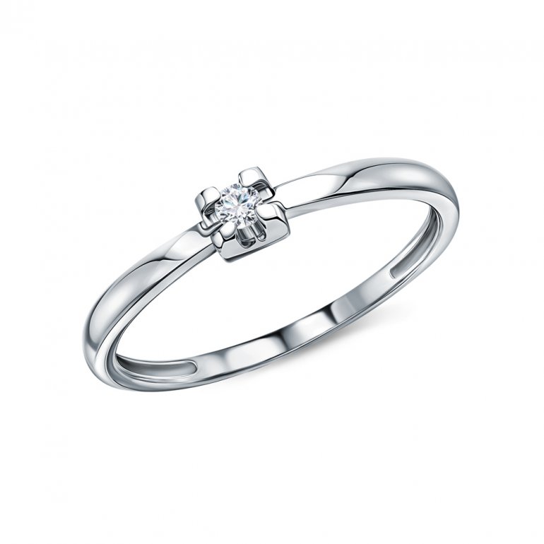 Кольцо с 1 бриллиантом, 0.044 карат, огранка круг 57 граней, цвет 3, чистота 6, тип огранки А; Белое золото 585 пробы.