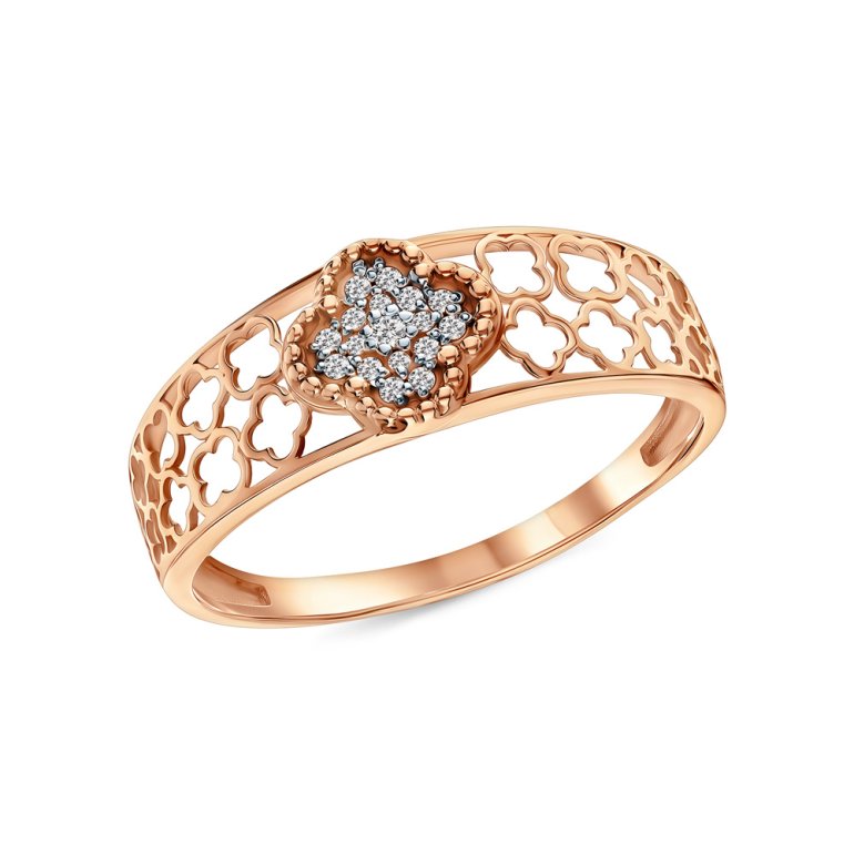 Кольцо, вставка: фианитом бесцветным;  фианитом бесцветным;  фианитом бесцветным; Розовое золото 585 пробы.